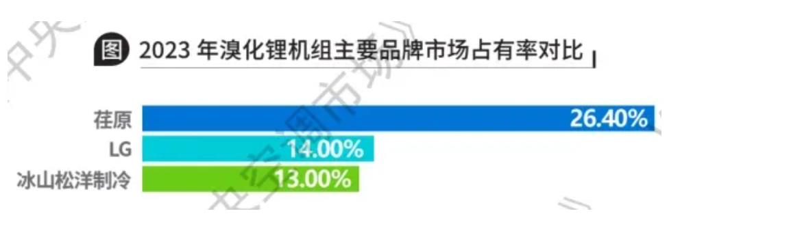 眾所周知,溴化鋰機(jī)組因其較高的技術(shù)門(mén)檻,品牌集中度一直較高。從品牌來(lái)看,荏原、LG、冰山松洋制冷等品牌占據(jù)市場(chǎng)優(yōu)勢(shì)地位。2023年,荏原以26.40%的占有率,穩(wěn)坐溴化鋰市場(chǎng)頭把交椅,依托在“余熱利用”領(lǐng)域的優(yōu)勢(shì),憑借成熟的產(chǎn)品技術(shù)為青海麗豪半導(dǎo)體材料有限公司20萬(wàn)噸高純晶硅光伏制造項(xiàng)目、浦發(fā)集團(tuán)海濱資源再利用中心、ABB重慶兩江新區(qū)變壓器智能制造基地遷建項(xiàng)目等客戶(hù)提供了有力支持。